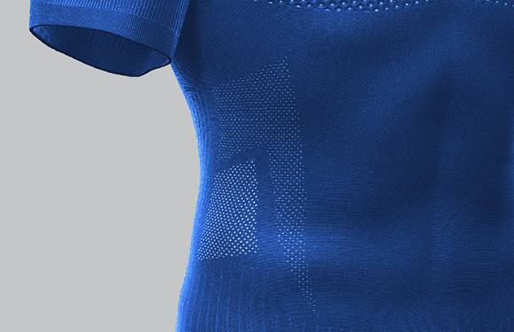 The 3D Weaved Channel has 10 micro pores per square centimeter (10/cm²). These micro pores remain in continual contact with the skin, regulating body temperature to maintain it within the optimum range for athletic performance.