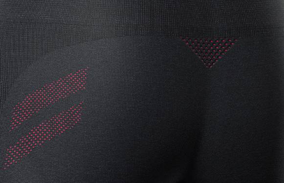 The 3D Weaved Channel has 10 micro pores per square centimeter (10/cm²). These micro pores remain in continual contact with the skin, regulating body temperature to maintain it within the optimum range for athletic performance.