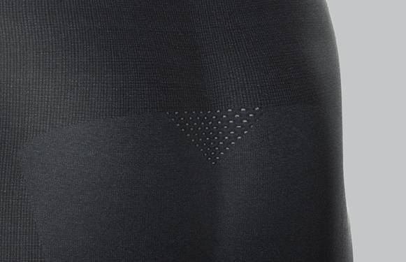 The 3D Weaved Channel has 10 micro pores per square centimeter (10/cm²). These micro pores remain in continual contact with the skin, regulating body temperature to maintain it within the optimum range for athletic performance.